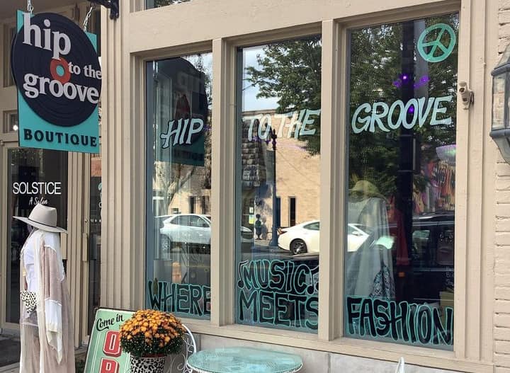 HIP TO THE GROOVE BOUTIQUE WINDOW PAINTING